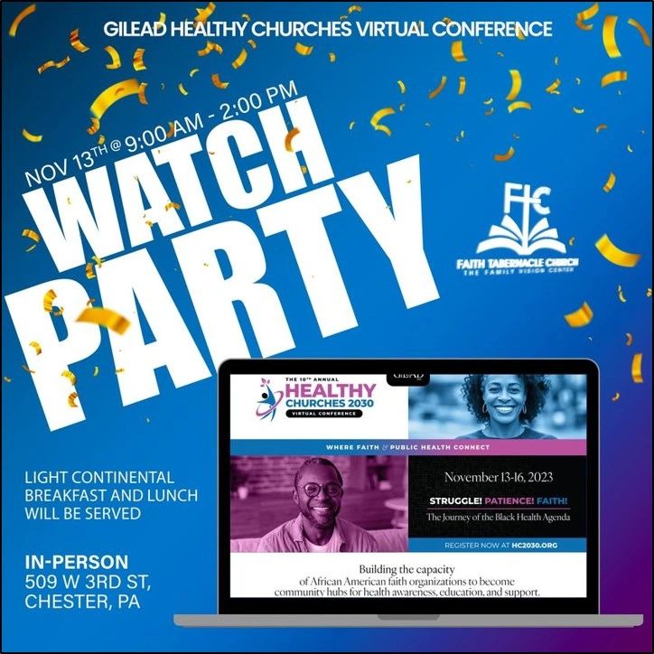 Join FTC as we kick-off the start of the Virtual Healthy Churches conference with an in-person watch party on Monday, November 13th starting at 9AM at Faith Tabernacle Church. Refreshments and lunch will be served. If you cannot attend the in-person watch party, you can still access the conference from your device.